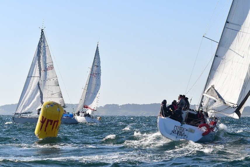 The start of the 31st Voiles du Froid was given from the charming port of Port Haliguen, where crews hoisted their sails for the Matelex regatta. Despite a promising start, the wind died as they passed La Teignouse, and the Mobil regatta had to be postponed until the following day.