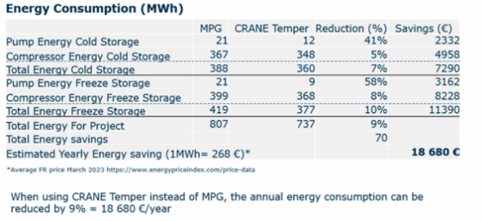 La elección del fluido caloportador CRANE Temper® contribuye a reducir el consumo eléctrico y las emisiones de CO₂ relacionadas con la producción de refrigeración.