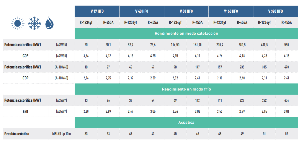 sobre el agua, lo que permite producir agua a hasta 75 °C con temperaturas exteriores extremas sin perder rendimiento.