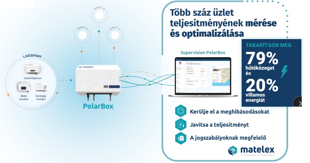 Ezzel párhuzamosan a beállítások optimalizálása és a fogyasztás nyomon követése akár 20%-kal is csökkentheti az energiaszámlát, egy olyan helyzetben, ahol a hűtés a szupermarket energiafogyasztásának akár 50%-át is kiteheti, és ahol a szigorú szabályozási követelmények miatt a közvetett kibocsátások csökkentése elengedhetetlen.