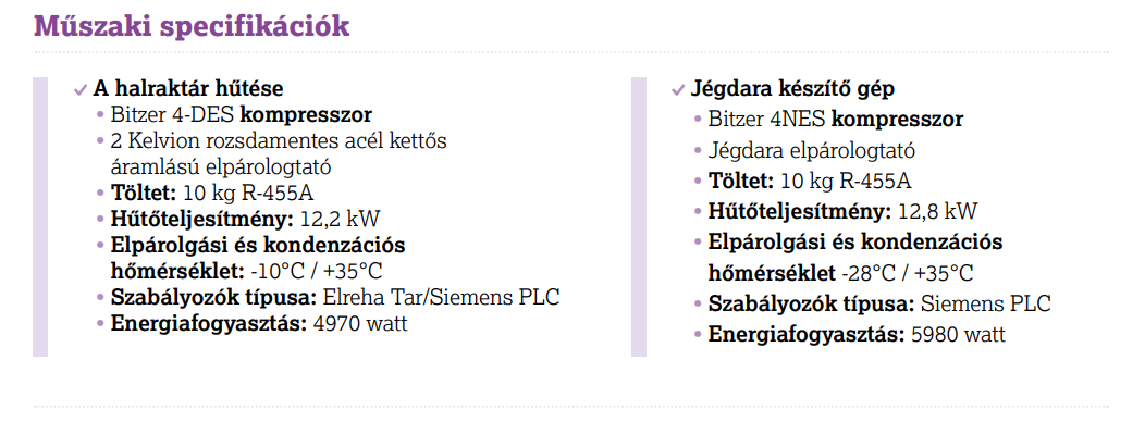 „A halászhajókon biztonsági okokból egyszerűen nem lehet propánt, CO₂-t vagy ammóniát használni. Ha zárt térben, a fedélzet alatt szivárgás történik, az azonnal veszélyt jelent. Az R-455A ezért a legbiztonságosabb és legmegfelelőbb megoldás.”