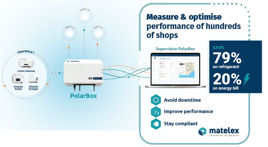 Tegelijkertijd kan het optimaliseren van instellingen en het monitoren van het verbruik de energierekening met wel 20% verlagen. In een context waarin koeling tot 50% van het energieverbruik van een supermarkt uitmaakt en er strenge wettelijke eisen gelden, is het essentieel om de indirecte uitstoot te verminderen.