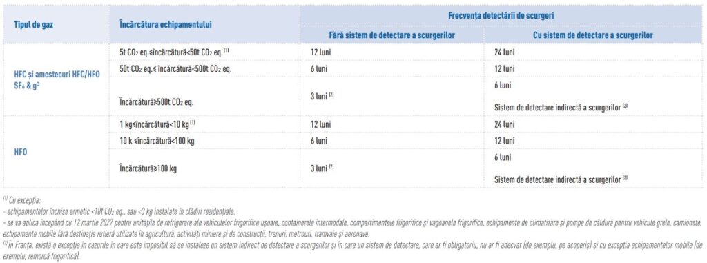 Toate echipamentele cu o încărcătură mai mare sau egală cu 5 t. eq CO2 de HFC sau amestec HFC/HFO sau 1 kg de HFO trebuie să fie supuse unui control de etanșeitate. A se vedea tabelul de frecvență a controalelor de mai jos.