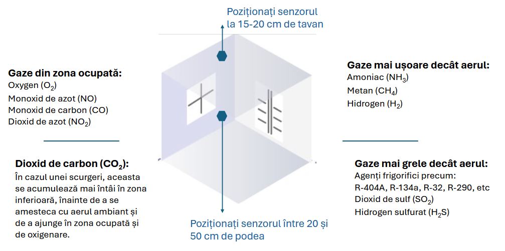 - 1. caracteristicile agenților frigorifici care trebuie detectați pentru a determina înălțimea de montare.