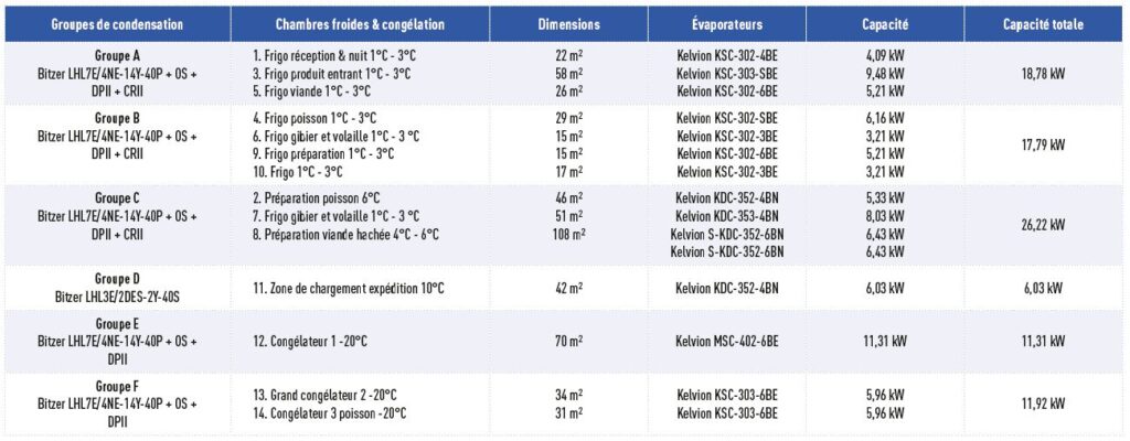 Pentru selecția finală, Vanpraet și HEYTEC au optat pentru 4 grupuri de condensare Bitzer pentru alimentarea celor 11 camere frigorifice, utilizând agentul frigorific Solstice® yf (R-1234yf). Cele 3 congelatoare au fost distribuite pe 2 grupuri de condensare Bitzer care utilizează R-454C. În fiecare spațiu au fost instalate vaporizatoare Kelvion. Montarea panourilor izolante a fost asigurată de compania parteneră Proleco.